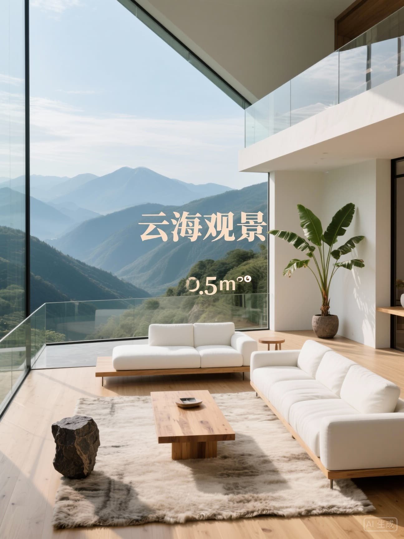 超视野设计:4.5m挑高空间,玻璃幕墙高度3.2m,转角采用弧形玻璃(半径1.5m,无视觉死角)