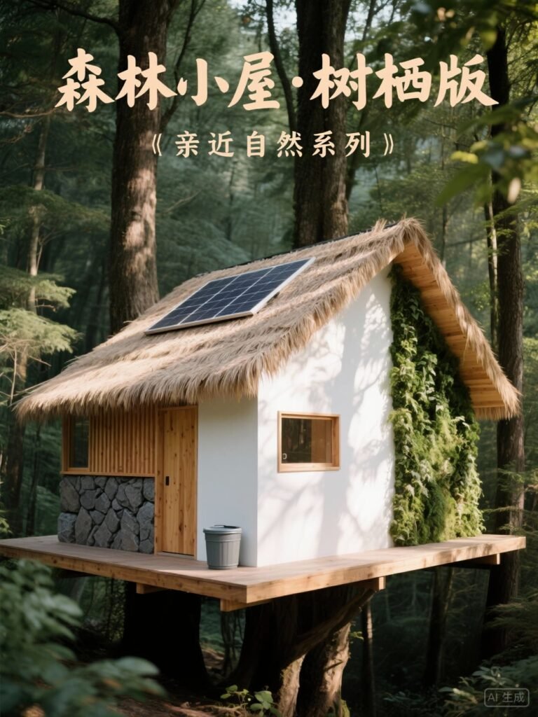 生物友好设计:屋顶茅草层预留鸟类筑巢空间,垂直绿化墙选用本地爬藤植物(五叶地锦、紫藤)