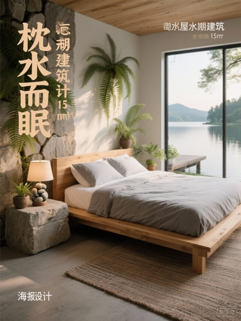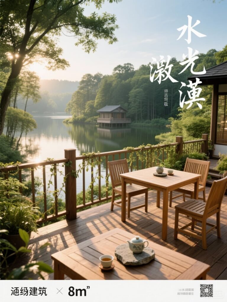 水景观系统:15㎡无边际水池(水深0.5m),与湖面水位差≤2cm形成视觉延伸,池底铺设蓝色玻璃马赛克(防滑系数0.8)